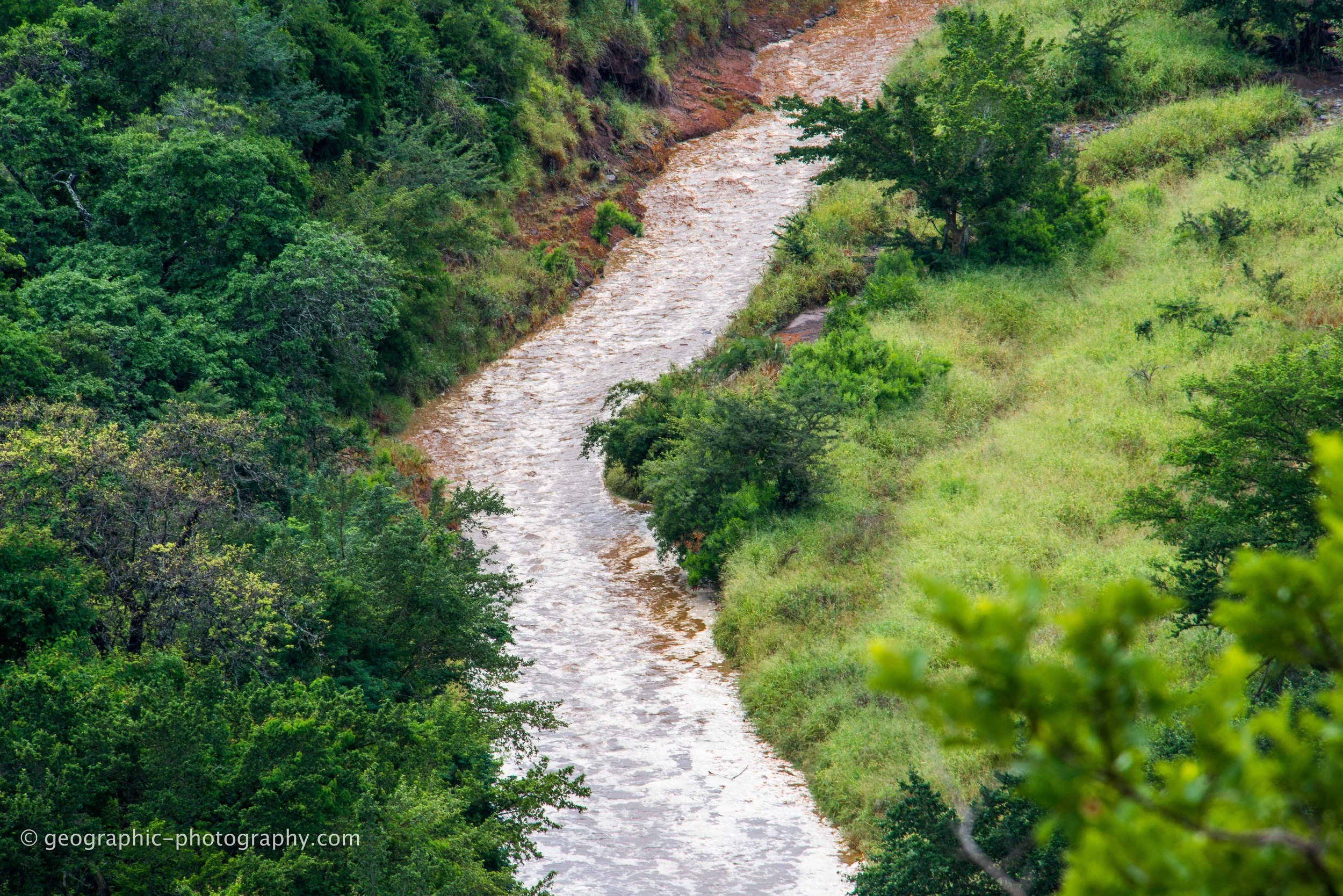 It had been raining during the night. From the time we came to Leopard Mountain Lodge, the big river was dried up - nothing but red sand. Suddenly in the mid afternoon we were witness to a spectacular moment...... The river came to life. I ran to the my lodge and grabbed my camera to document this. Truly a surreal moment - to see a river come to life.