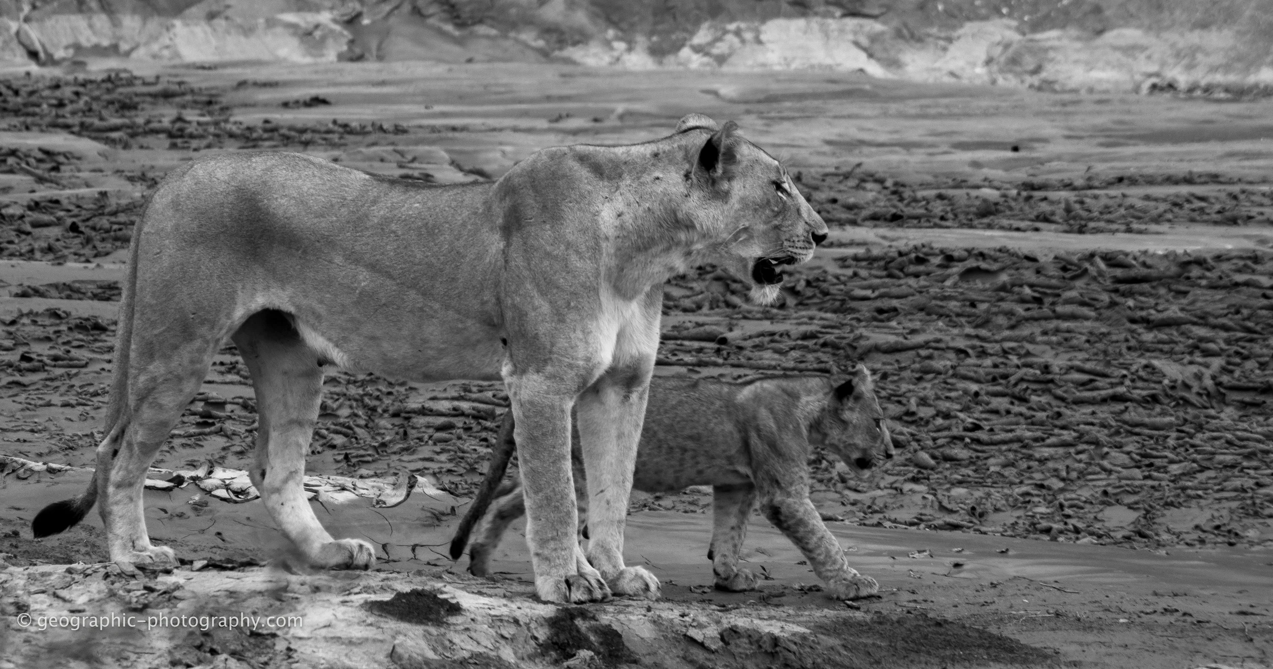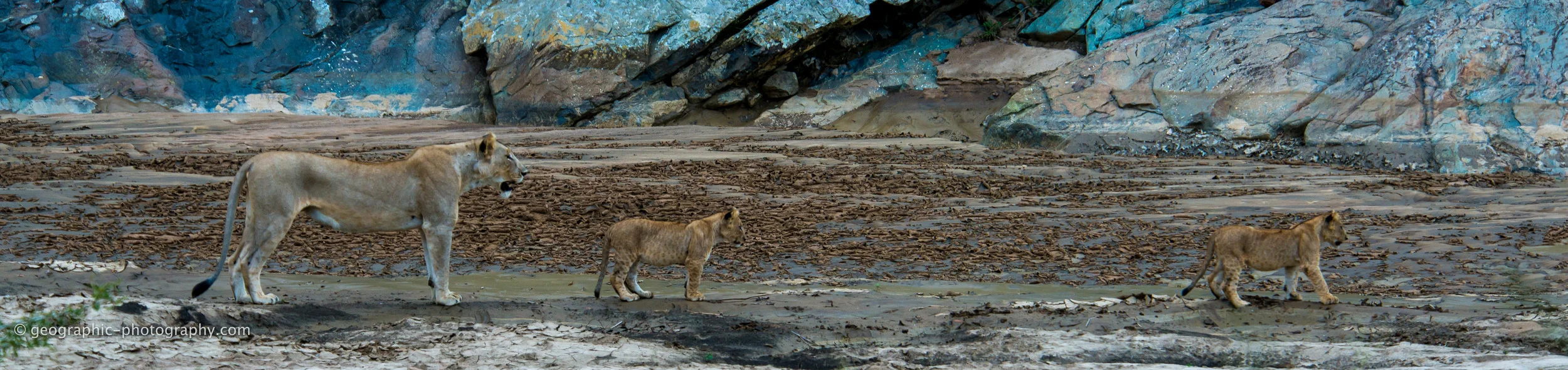 Female lion and her two cubs